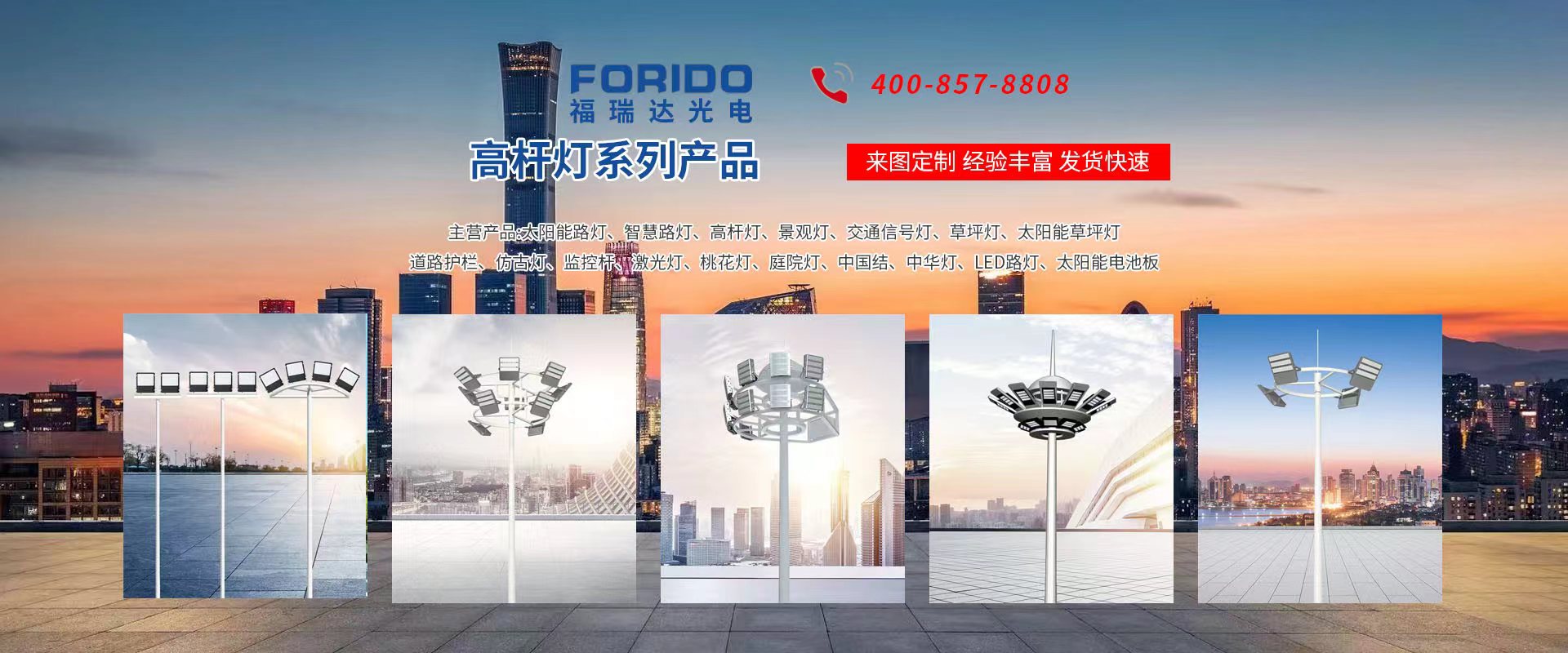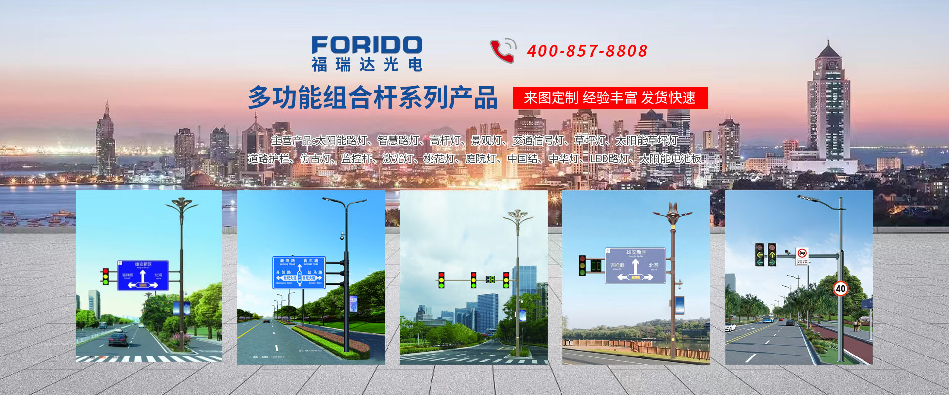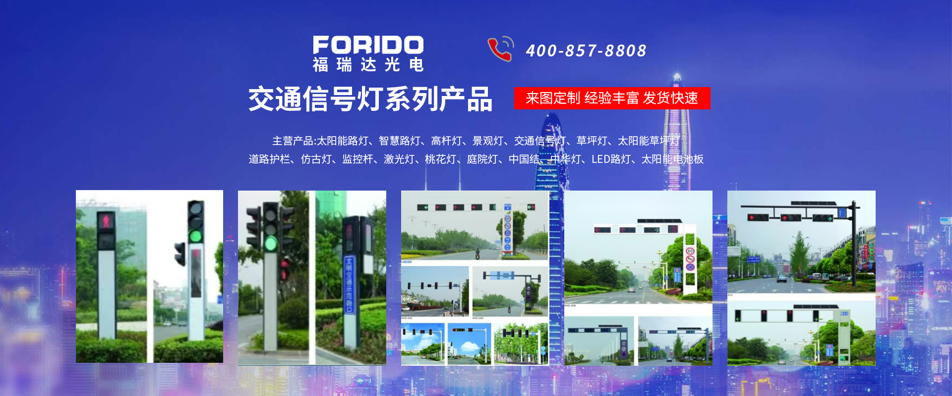 揚(yáng)州福瑞達(dá)光電科技有限公司位于淮左名都?xì)v史文化名城、中國(guó)路燈制造基地?fù)P州市北郊菱塘工業(yè)園,公司占地面積76000平方米,注冊(cè)資金10518萬(wàn)元,擁有高級(jí)技術(shù)嫻熟的員工280多人,擁有大型折彎?rùn)C(jī)、激光切割、數(shù)控注塑機(jī)、壓鑄機(jī)、自動(dòng)埋弧焊、氣焊、彩色粉末靜電噴塑等大型自動(dòng)化設(shè)備,我公司是一家集設(shè)計(jì)、研發(fā)、生產(chǎn)、銷(xiāo)售、施工安裝服務(wù)為一體的戶外交通照明產(chǎn)品制造商,主要生產(chǎn)智慧路燈、太陽(yáng)能路燈、LED路燈、高桿燈、景觀燈、交通信號(hào)燈、交通標(biāo)志牌、通信鐵塔、路跨鋼結(jié)構(gòu)、公交站臺(tái)、太陽(yáng)能光伏組件、景點(diǎn)亮化、樓宇亮化工程的設(shè)計(jì)施工等。公司秉承開(kāi)拓創(chuàng)新、銳意進(jìn)取、精誠(chéng)服務(wù)的企業(yè)精神,堅(jiān)持以“誠(chéng)信為本、技術(shù)為先、服務(wù)是金”的合作理念,我們憑借先進(jìn)的制造工藝、優(yōu)質(zhì)的產(chǎn)品質(zhì)量、合理的市場(chǎng)價(jià)格和完善的售后服務(wù)贏得了廣闊的市場(chǎng)和客戶的信賴。  我公司已通過(guò)ISO9001質(zhì)量體系認(rèn)證、ISO14001環(huán)境管理體認(rèn)證,CQC產(chǎn)品認(rèn)證,中國(guó)節(jié)能產(chǎn)品認(rèn)證,通過(guò)“CCC”強(qiáng)制性產(chǎn)品認(rèn)證,具有市政總承包,照明,交安,設(shè)計(jì)等資質(zhì)···